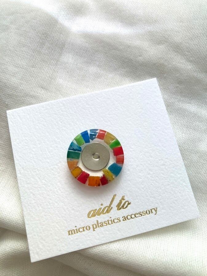 お客様のリクエストから生まれた マイクロプラスチックで作ったSDGsピンバッジ。