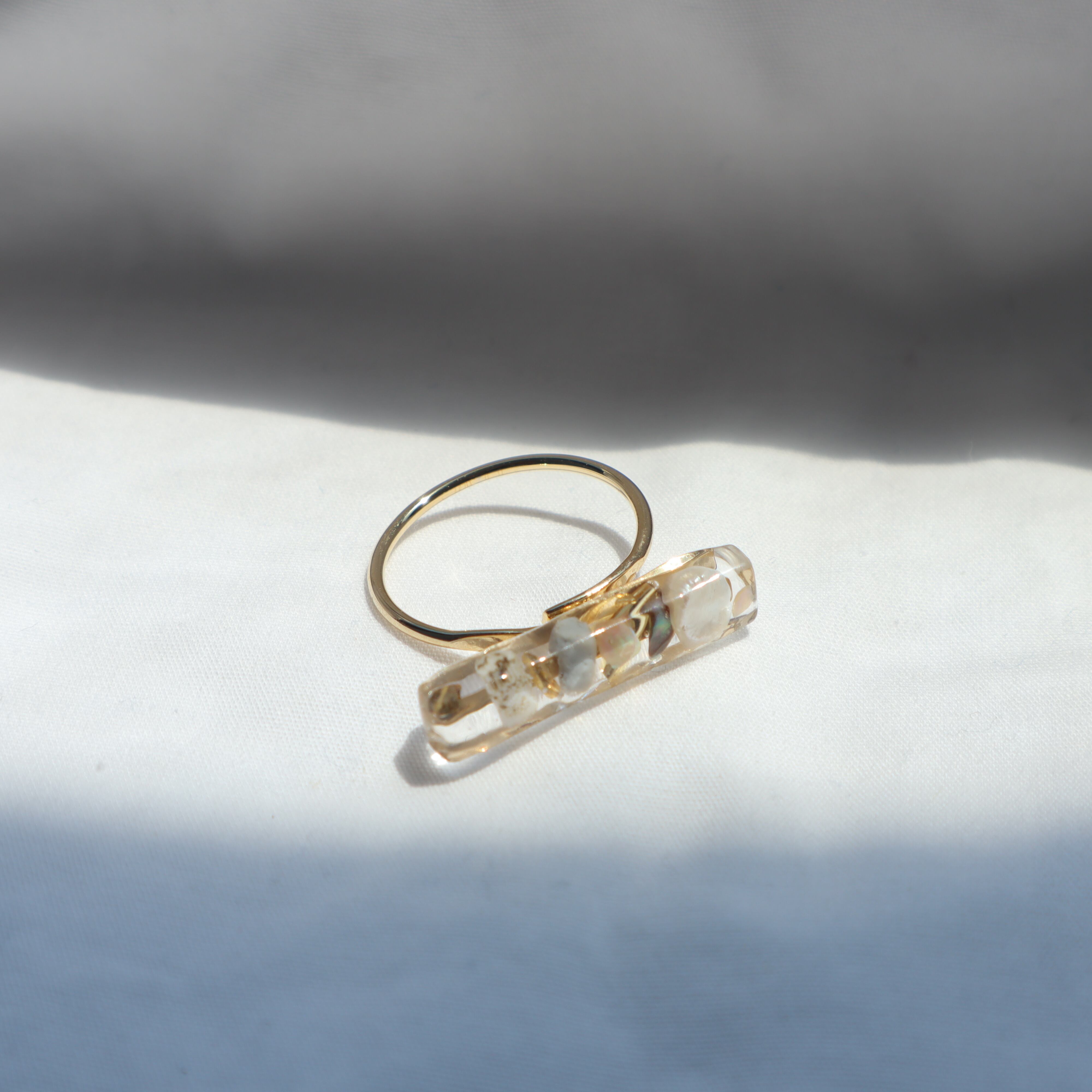 オトナな雰囲気のリング。長方形のフォルムが可愛いアイテムです。