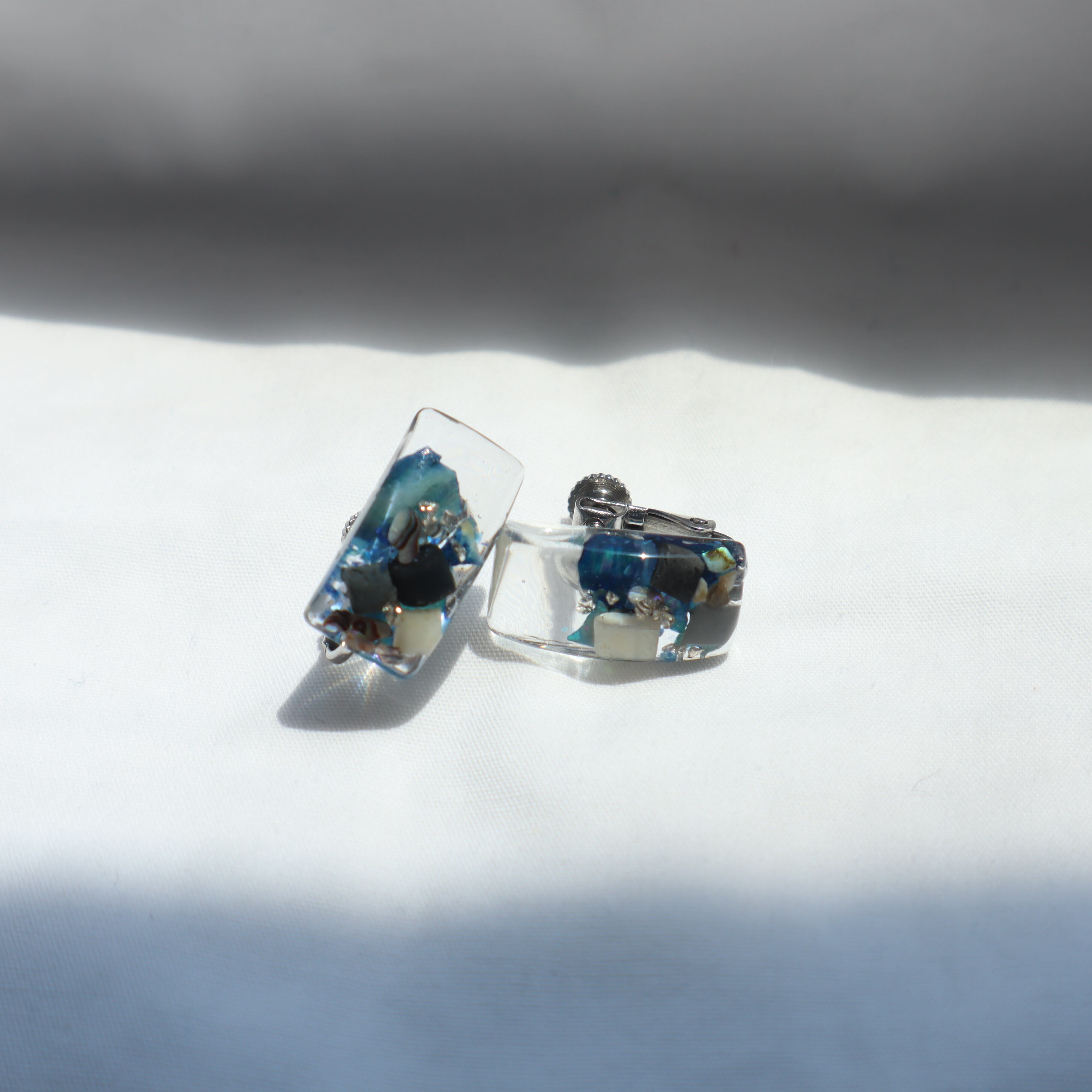【Arakawa series】荒川河川敷に多く落ちているモノトーンのマイクロプラをいかしたデザインです。クリアにグラデーションにして ”河川や海がキレイになっていきますように”という想いを表現しています。
