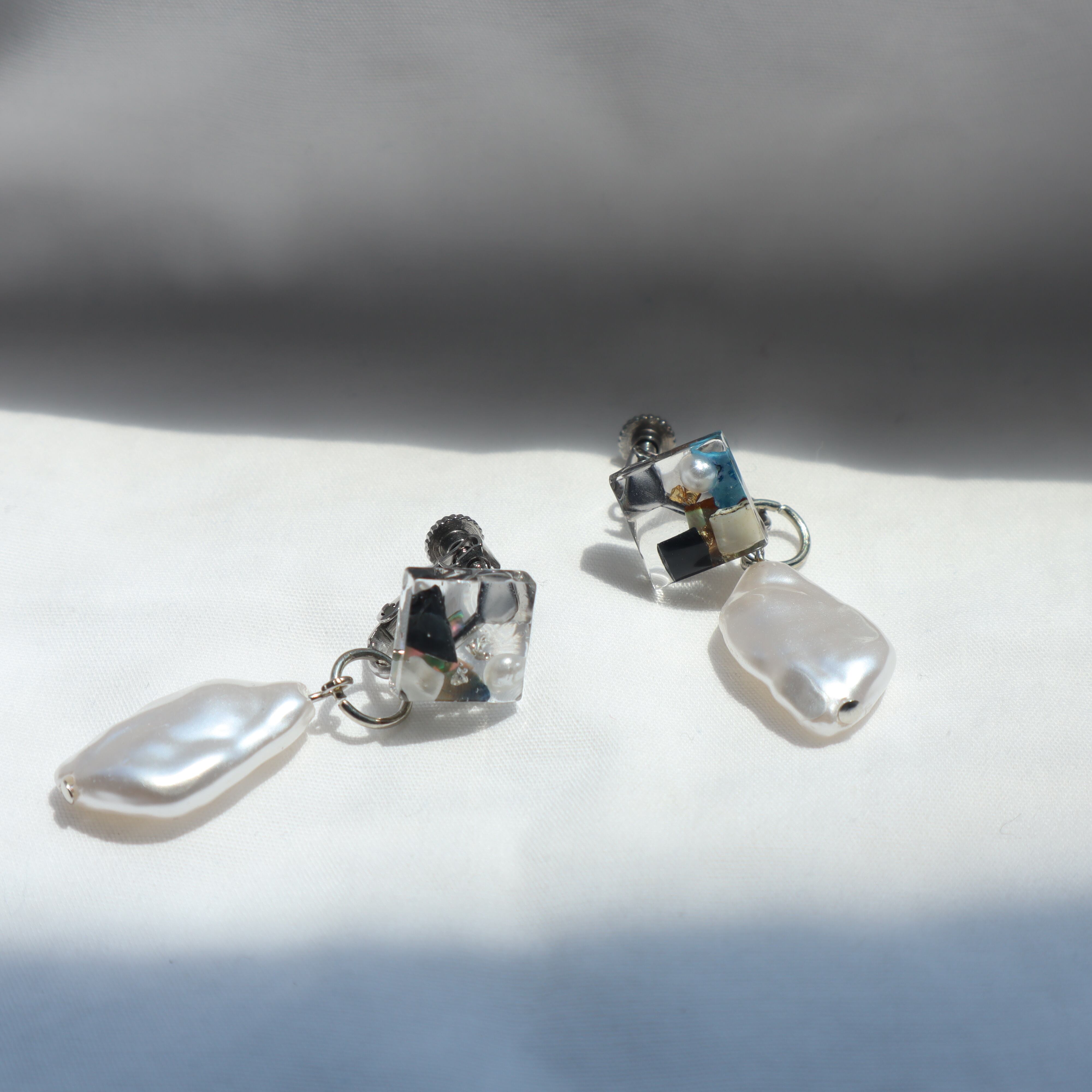 【Arakawa series】荒川河川敷に多く落ちているモノトーンのマイクロプラをいかしたデザインです。クリアにグラデーションにして ”河川や海がキレイになっていきますように”という想いを表現しています。2WAYでゆらゆらパーツが取り外せます。